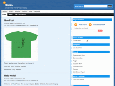 Free Wordpress Simple Bleu Theme, Free To download and Easy to edit Wordpress Theme Template, Suitable for Any kind of Blogging, Web2.0 and Good Looking Theme for your Wordpress Blog.